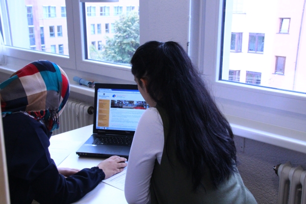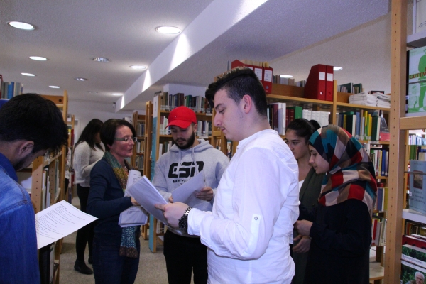 Kleingruppen führten die Gespräche, die weit mehr als einseitige Befragungen wurden: Es entwickelte sich ein gegenseitiger Austausch. Da alle Jugendlichen selbst einen Migrationshintergrund hatten, konnten auch sie von ihren Erfahrungen bei der Ankunft in Deutschland berichten.