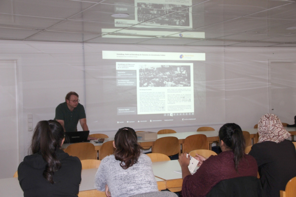 18 Zwölftklässlerinnen und -klässler der Johann-Friedrich-von-Cotta-Schule in Stuttgart nahmen im Schuljahr 2016/17 am Seminarkurs Zuflucht in Stuttgart unter der Leitung von Martin Gansen teil. Sie befassten sich mit der Ankunftssituation im deutschen Südwesten sowohl historisch als auch gegenwärtig. Am Ende des ersten Halbjahres und als Abschluss des ersten historischen Teils des Seminarkurses sollten die Schülerinnen und Schüler Zeitzeugengespräche mit nach Baden-Württemberg eingewanderten Personen führen und darüber eine Facharbeit schreiben. Für den historischen Teil kooperierte die Schule mit dem HdH BW, insgesamt drei Termine fanden statt.