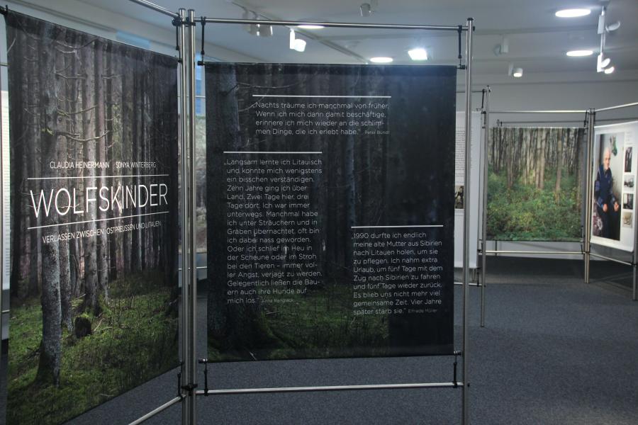Die Wanderausstellung „Wolfskinder – Verlassen zwischen Ostpreußen und Litauen“ dokumentiert in nie zuvor gezeigten Bildern und Textzeugnissen den Weg der Wolfskinder bis heute. Die Ausstellung basiert auf einem Oral-History-Projekt der Fotografin Claudia Heinermann und der Journalistin Sonya Winterberg. Für diese eindrucksvolle Dokumentation reisten sie über mehrere Jahre nach Litauen, um dort lebende Wolfskinder zu besuchen. Mit ihnen sprachen sie über die Erlebnisse der Kindheit, die Flucht und das Leben hinter dem „Eisernen Vorhang“ – ohne Wurzeln und voller Sehnsucht nach Familie und Verwandten. Ihre bewegenden Schicksale werden so dem Vergessen entrissen und öffnen sich zu einem vielschichtigen Panorama der Zeitgeschichte.