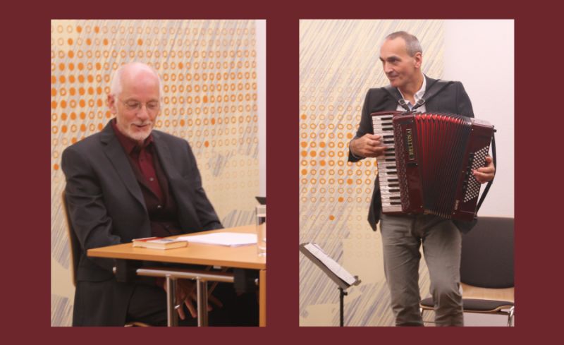 Die Auszüge aus Mendele Mojcher Sforims Roman, die Rudolf Guckelsberger im HdH BW las, sind von derber Komik, sie bereiteten ihm selbst und dem Publikum einen Heidenspaß. Man lacht über diese traurigen Gestalten, über die irrwitzigen Situationen, in die sie tumb und naiv hinein-, aber auch wieder herausstolpern: Ihre Unfähigkeit rettet sie aus der Armee, ihnen damit das Leben. „Gottvertrauen ist eine jüdische Sache“. Frank Eisele mit seinem Akkordeon zeigte, zu welcher mitreißenden Lebensfreude sie führt. „Ob die beiden jemals nach Eretz Israel gekommen sind, müsst Ihr Euch selbst ausdenken“ – mit dieser Aufforderung entließ Guckelsberger die Zuhörerinnen und Zuhörer in den regnerischen Stuttgarter Abend.