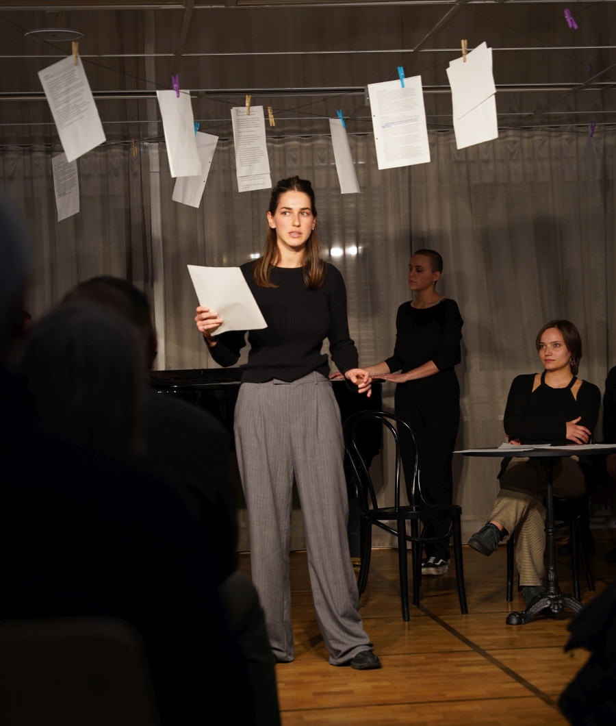 Sprecherinnen: Rahel Ehret, Pauline Ferber, Anja Lichtl, Abby Vollmer, Paula Zumbroich. Klavier: Pol Alvarez Viciana
