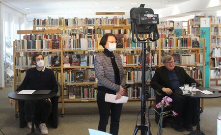 Sonya Winterberg und Claudia Heinermann, die Kuratorinnen der Ausstellung, sprachen mit Rainer Bobon vom HdH BW über ihre Reisen nach Litauen und die intensiven Gespräche, die sie mit den sogenannten Wolfskindern führen konnten.