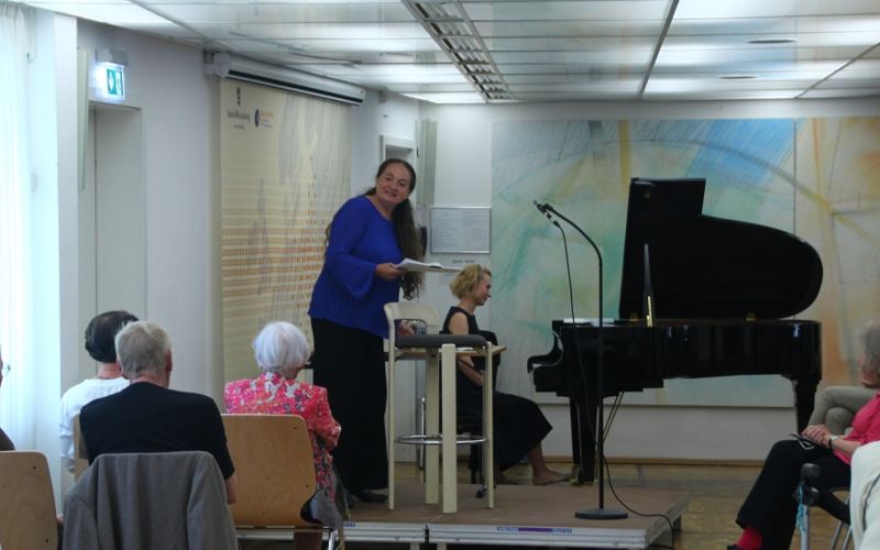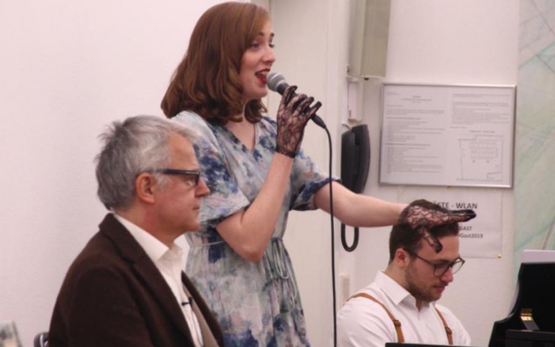 Barbara Stoll las und sang Texte und Lieder aus der „literarischen Nachrichtenbörse im Berlin der 1920er-Jahre". Von Kästner, Tucholsky, Kaléko, Holländer, Roth, Kisch, von Cziffra ... mit Frieder Egri am Klavier.