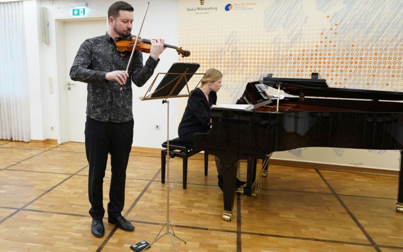 Im Begleitprogramm der Ausstellung Ryszard Kaja: Polska 33% – Natalia Szabat am Flügel und Piotr Szabat auf der Violine spielten Werke u. a. von Frédéric Chopin, Joseph Elsner, Henryk Wieniawski und Grażyna Bacewicz.