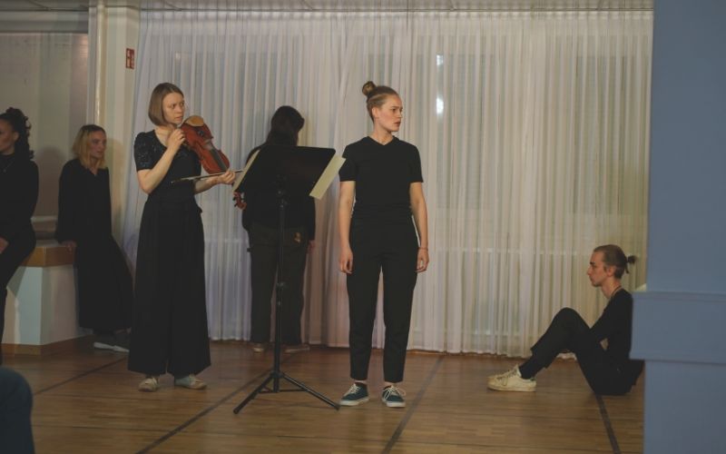 Mit Milena Böhm, Julika Hing, Felix Janssen und Michelle Sitko, Studierende der Musikhochschule Karlsruhe, und Luise Wunderlich (auch Konzeption)