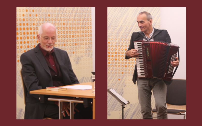 Nach mehrmaligem Verschieben jetzt endlich: Fortsetzung der Reihe Neugelesen. Literarische Fundstücke. Mit Rudolf Guckelsberger, an der Violine Sara Schlumberger-Ruiz, am Akkordeon Ulrich Schlumberger.