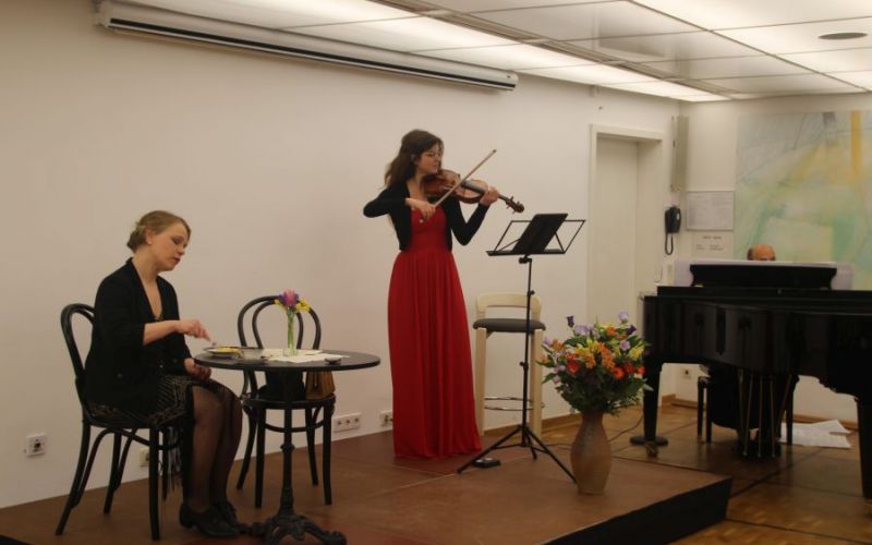 Stephanie Knauer am Flügel und Kristina Dumont an der Violine spielten Kaffeehaus-Melodien vom 19. Jahrhundert bis in die Gegenwart. Durch das Programm führte Carsten Eichenberger vom HdH BW.
