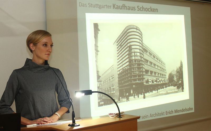Katharina Stolz vom Institut für Architekturgeschichte der Universität Stuttgart stellte das Kaufhaus Schocken und seinen Architekten Erich Mendelsohn vor.