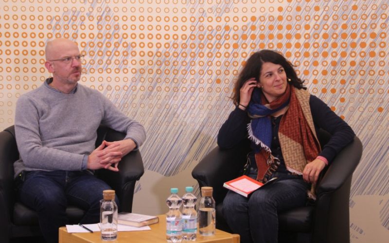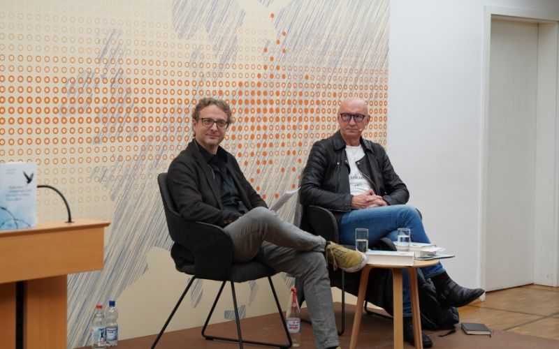 Der Literaturhistoriker und Schriftsteller Peter Becher stellte im Gespräch mit Frances Jackson seinen Roman vor. Im Begleitprogramm der Ausstellung »Landschaft der Liebe. Motive aus der Graphic Novel Sudetenlove«.