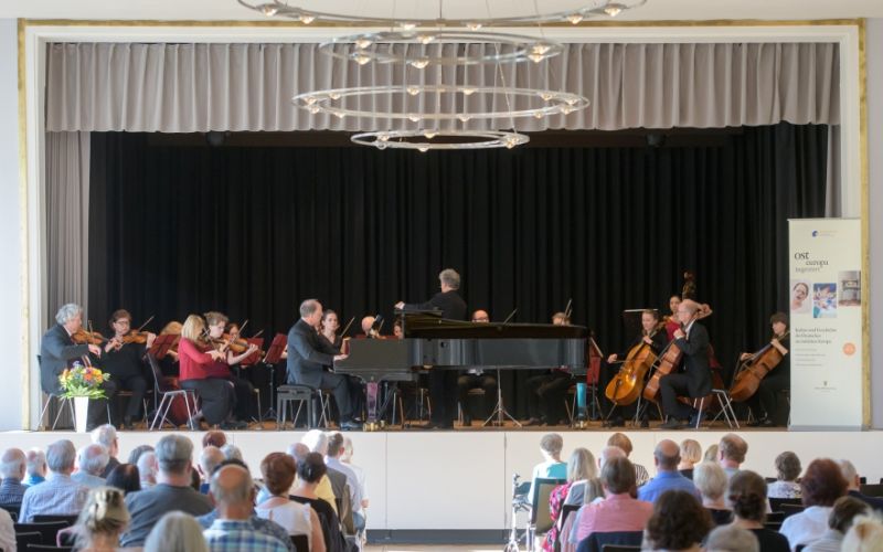 Das renommierte Kammerorchester arcata stuttgart spielte unter der Leitung seines Gründers und Dirigenten Patrick Strub Werke von Kalinnikow, J. S. Bach, Jensen und Grimm. Als Solist am Klavier konnte dankenswerterweise Prof. Florian Wiek für den leider erkrankten Maximilian Schairer gewonnen werden.