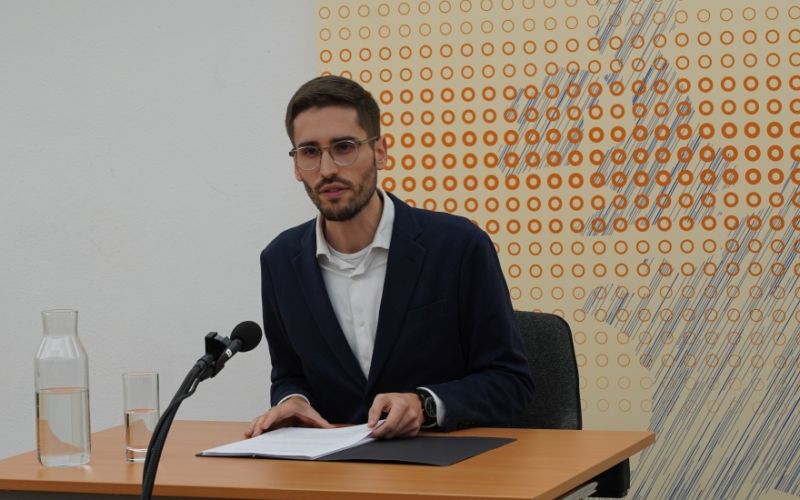„Er liebte das Leben und die Menschen.“ Leszek Jamrozik, Ryszard Kajas langjähriger Lebenspartner, erzählte zur Ausstellungseröffnung von dem polnischen Plakatkünstler und berichtete über die Entstehung der Serie „Polska“.